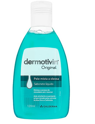 Indicado para peles mistas a oleosas, o sabonete líquido Dermotivin Original possui fórmula composta por extratos de Aloe Vera e Calêndula que, juntos, eliminando o excesso de oleosidade do rosto e promovem ação regeneradora, emoliente e suavizante na pele.