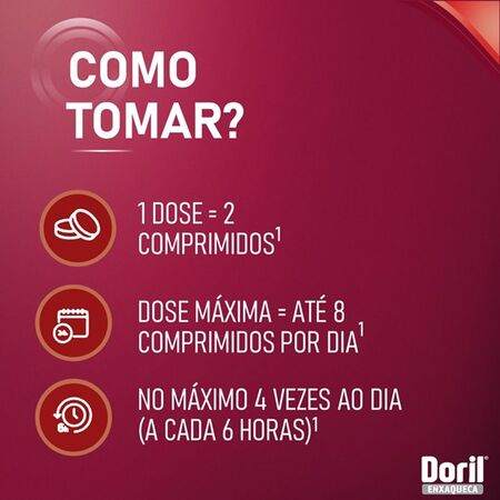 Doril Enxaqueca é indicado para o alívio de dores leves a moderadas tais como: dor de cabeça, dores causadas por resfriados ou sinusite; artrite; dores musculares, dor de dente; dismenorréia (cólicas pré-menstrual e menstrual) e enxaqueca. Não tome este medicamento caso você for alérgico ou hipersensível a qualquer um dos componentes da fórmula descritos no item. Se você já teve reações alérgicas a qualquer outro analgésico e/ou antipirético. Se você faz uso concomitante com qualquer outro produto que contenha paracetamol. Este medicamento é contraindicado para menores de 12 anos. Mulheres grávidas ou amamentando não devem utilizar este medicamento sem orientação médica.
