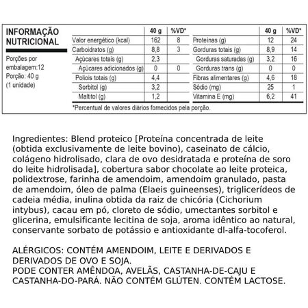 Composição: Whey Protein, fibras, Stevia, vitamina E
