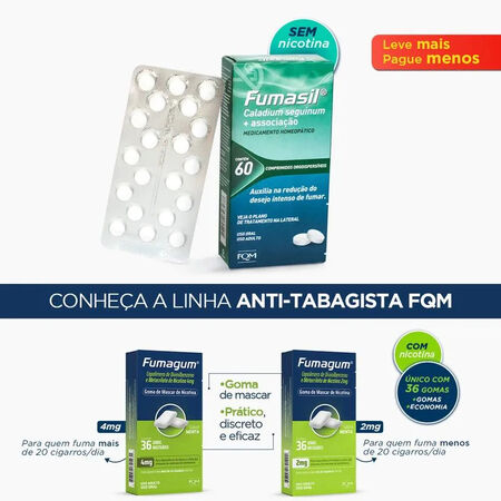 Fumasil® é um medicamento auxiliar no tratamento do tabagismo, indicado para quem deseja parar de fumar sem o uso de nicotina. Sua ação ajuda a reduzir o desejo intenso de fumar, combater os sintomas da abstinência e provocar aversão ao gosto e ao cheiro do cigarro.