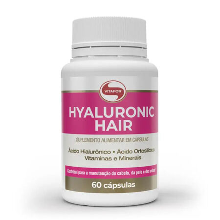O Hyaluronic Hair Vitafor é um suplemento alimentar em cápsulas, formulado com Ácido Hialurônico, Ácido Ortosilícico, vitaminas e minerais, desenvolvido para auxiliar na saúde do cabelo, unhas e pele.