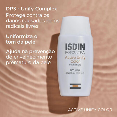 O Isdin FotoUltra Active Unify Fusion Color é um clareador facial com cor universal e alta proteção solar FPS 99, desenvolvido para uniformizar o tom da pele e auxiliar no tratamento da hiperpigmentação, especialmente indicado para todos os tipos de pele, incluindo as mais sensíveis.