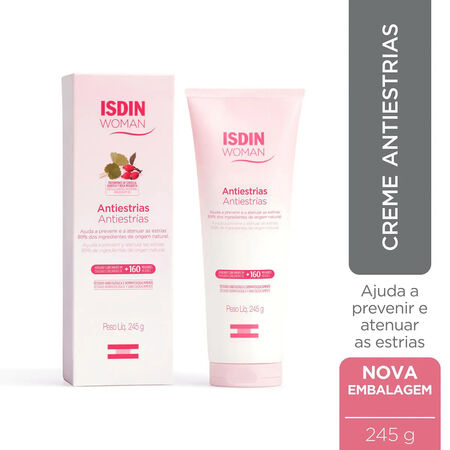 O Isdin Woman Antiestrias é um creme hidratante preventivo e reparador de estrias, desenvolvido especialmente para mulheres em fases de mudança corporal, como gravidez, puberdade ou variações de peso. Sua fórmula contém ingredientes naturais e dermocompatíveis que ajudam a melhorar a elasticidade da pele, reduzir a aparência de estrias existentes e prevenir o surgimento de novas.