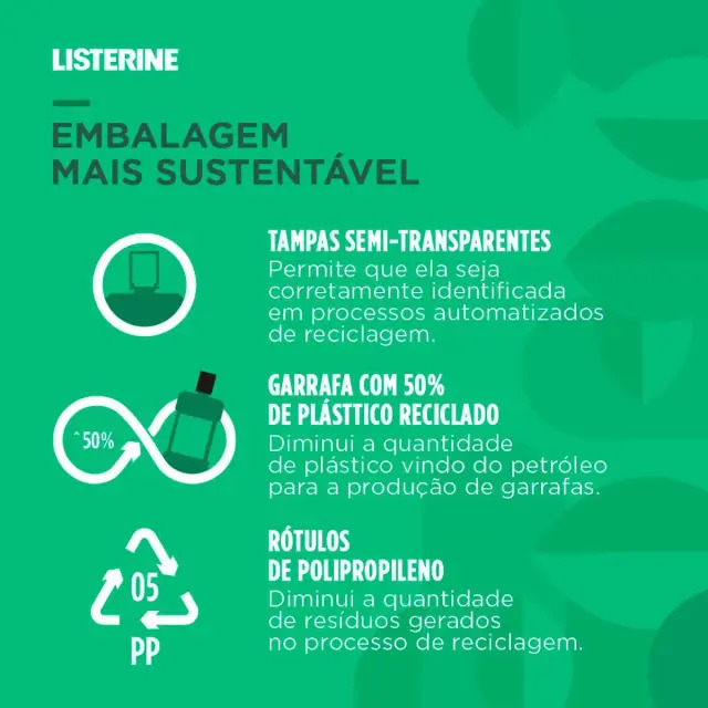 O Listerine Antitártaro é um enxaguante bucal antisséptico com álcool, desenvolvido para eliminar até 99% dos germes que causam placa bacteriana, gengivite e mau hálito. Sua fórmula contém cloreto de zinco, que forma um escudo protetor contra o acúmulo de tártaro, ajudando a prevenir manchas e o amarelamento dos dentes.