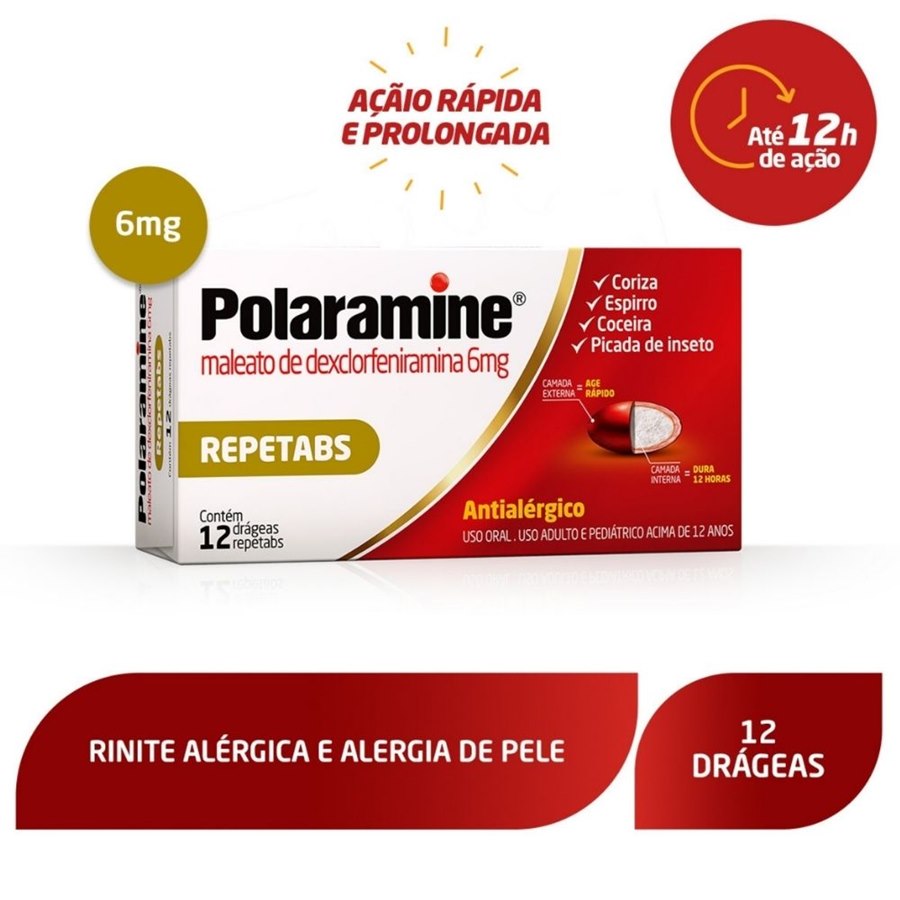 Indicações: Polaramine é destinado para alergia, prurido, rinite alérgica, urticária, picada de inseto, conjuntivite alérgica, dermatite atópica (um tipo de inflamação na pele) e eczemas alérgicos (dermatite). Possui ação rápida que dura até 12 horas. Uso oral. Uso adulto e pediátrico.