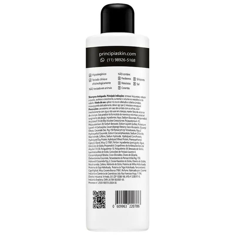 O Shampoo Principia AQ-01 foi desenvolvido para auxiliar no controle da queda e da quebra dos fios, estimulando o crescimento capilar e promovendo cabelos mais fortes, resistentes e volumosos. Sua fórmula combina ativos eficazes que limpam suavemente o couro cabeludo sem ressecar, mantendo o equilíbrio natural dos fios.