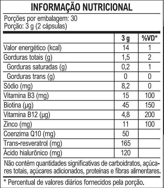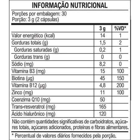 • Resveratrol: composto encontrado na casca da uva, vinho tinto, frutas vermelhas e amendoim¹, com potenciais efeitos antioxidantes e anti-inflamatórios². Pode auxiliar na proteção contra estresse oxidativo, especialmente em quem pratica exercícios físicos³.