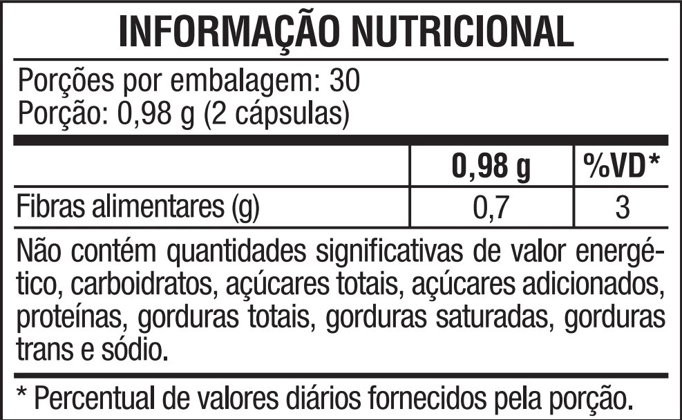 Uso adulto (a partir de 19 anos): ingerir 2 cápsulas ao dia (aproximadamente 0,98 g) ou conforme a orientação de médico ou nutricionista.