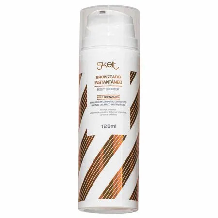 O Bronzeado Instantâneo Skelt não contém ativos autobronzeadores permanentes, sendo uma maquiagem corporal de efeito temporário, desenvolvida para oferecer resultado imediato e natural.