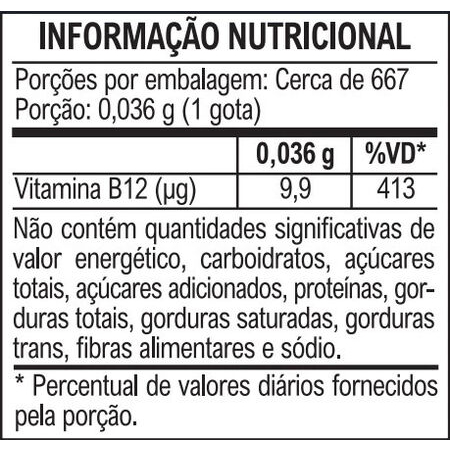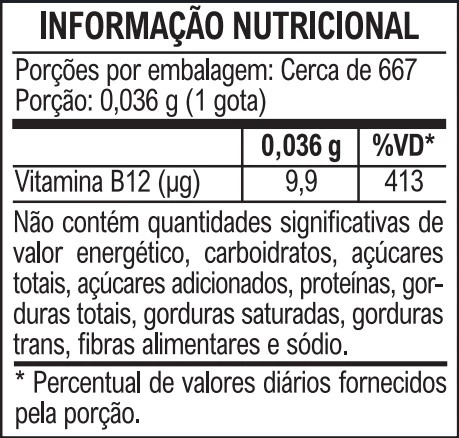 Alta concentração de vitamina B12: 9,9 mcg por gota;